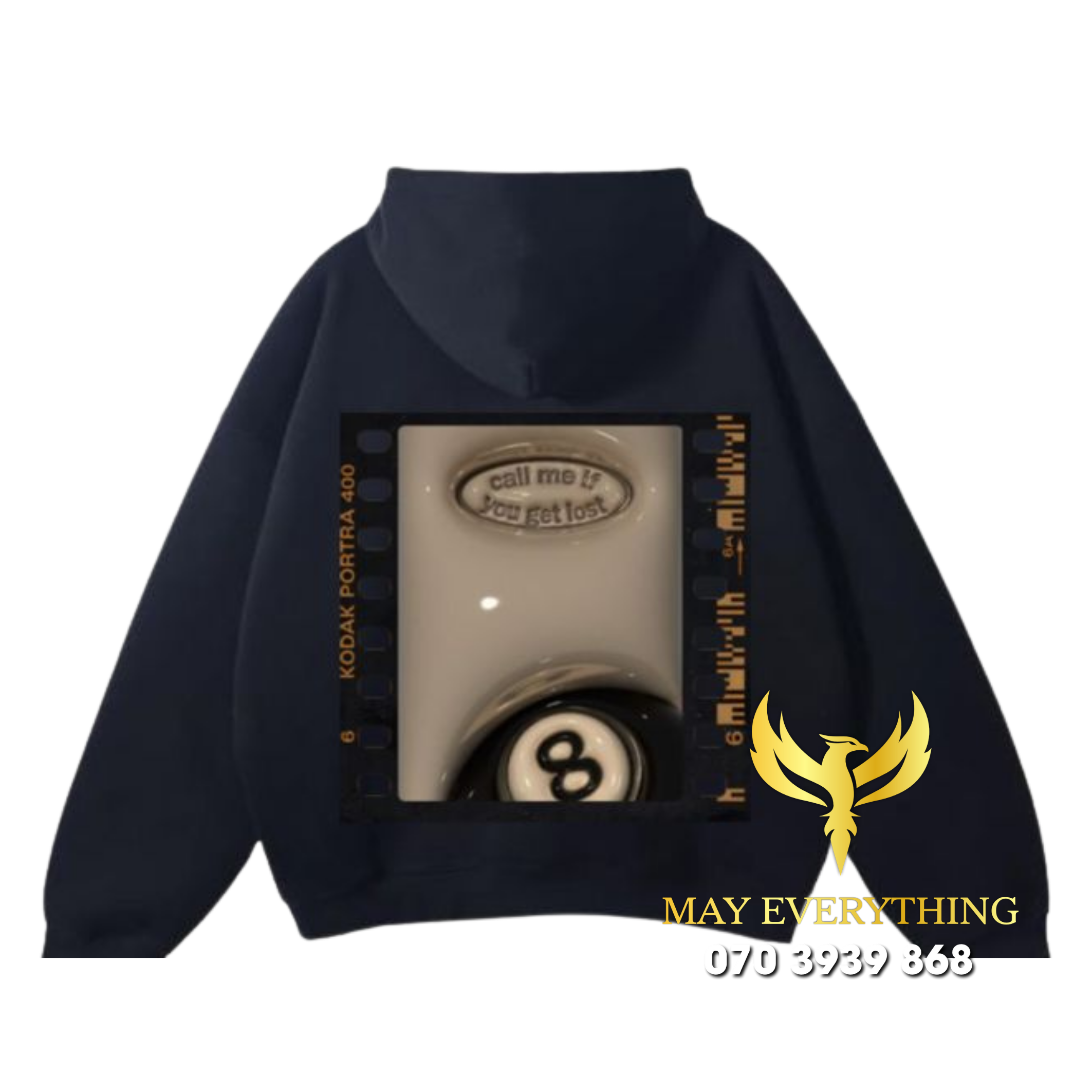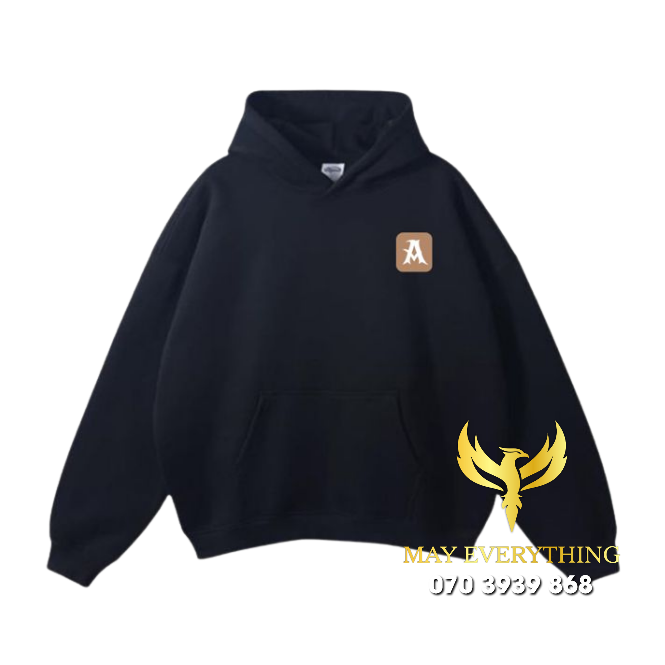 Áo hoodie màu đen in logo vàng đồng