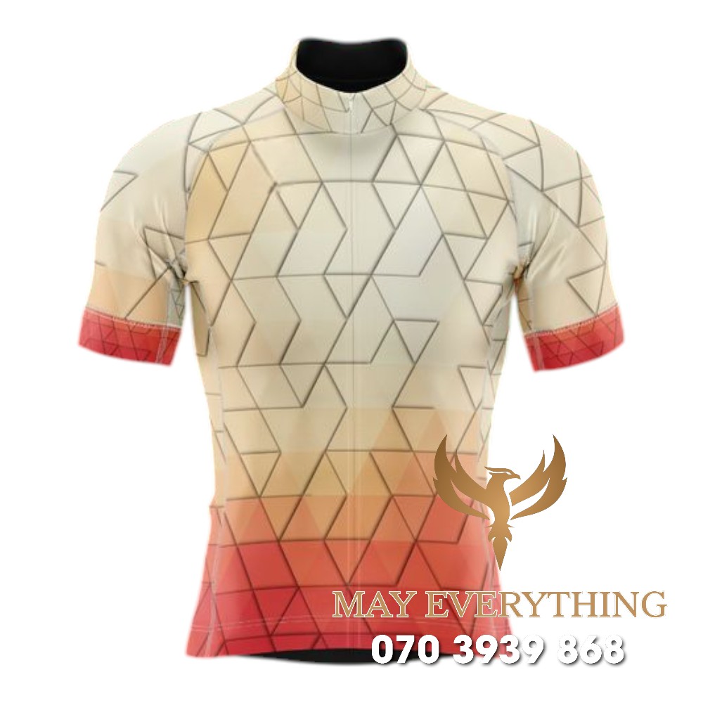 Áo thun chạy xe đạp màu cam kẻ họa tiết
