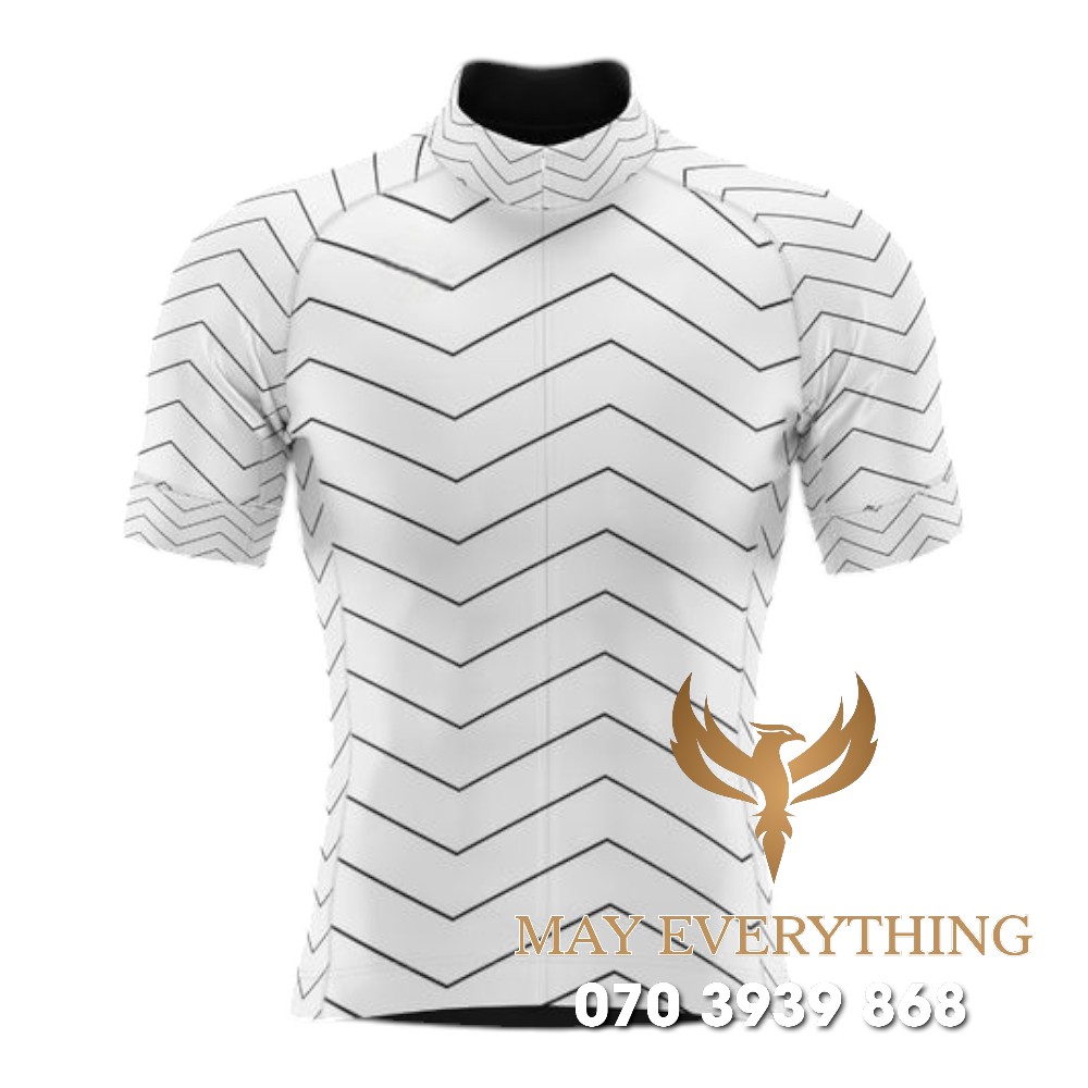 Áo thun chạy xe đạp màu trắng kẻ viền