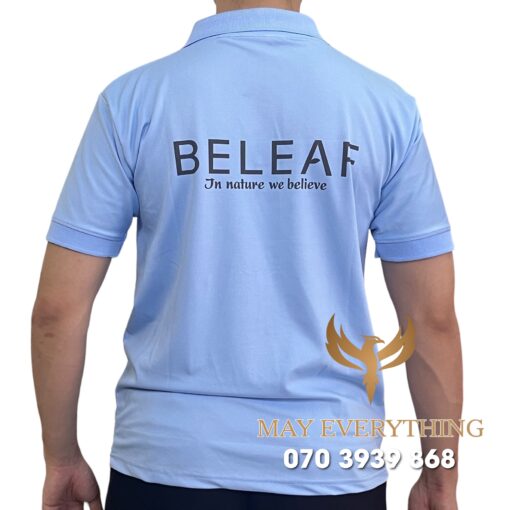 Áo thun polo đồng phục công ty được thiết kế đơn giản nhưng tinh tế, phù hợp với mọi đối tượng nhân viên. Màu xanh dương nhạt nhẹ nhàng mang lại cảm giác tươi mới, năng động, đồng thời tôn lên vẻ ngoài lịch sự của người mặc.