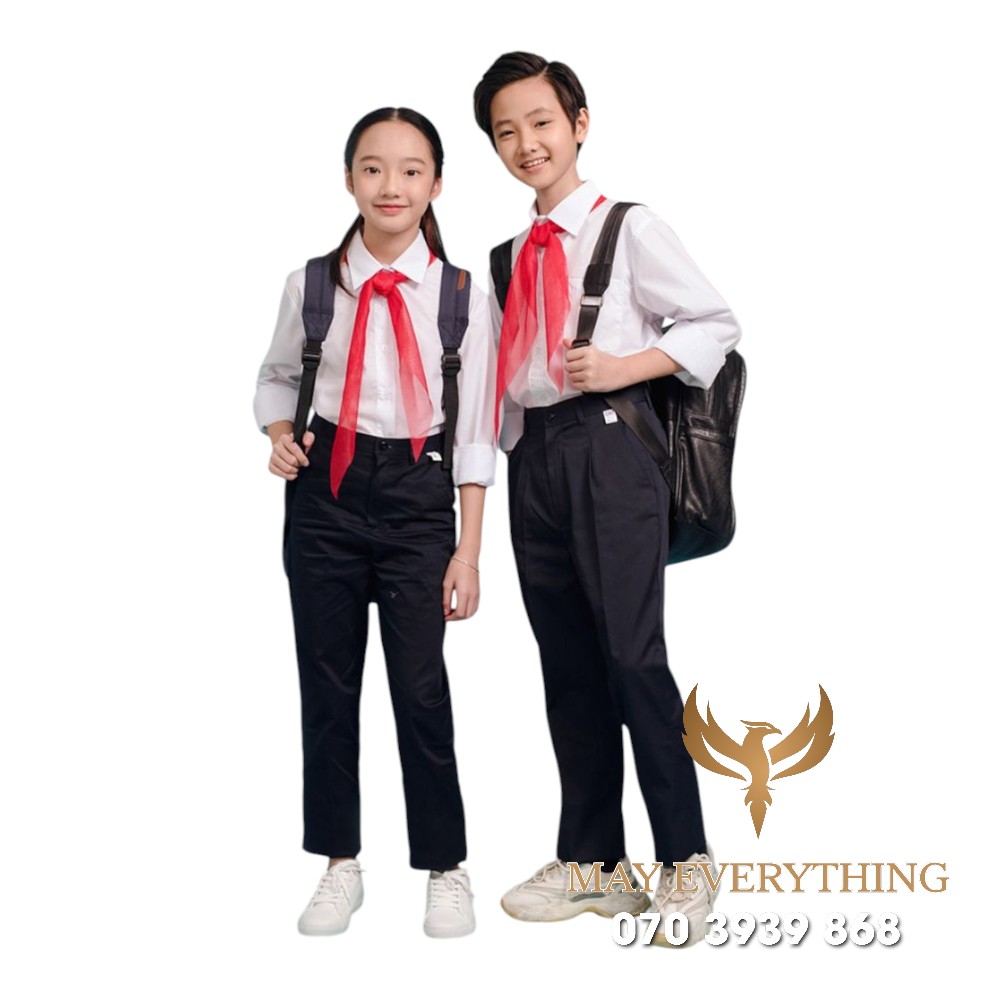 Đồng phục học sinh áo trắng quần tây in logo trường