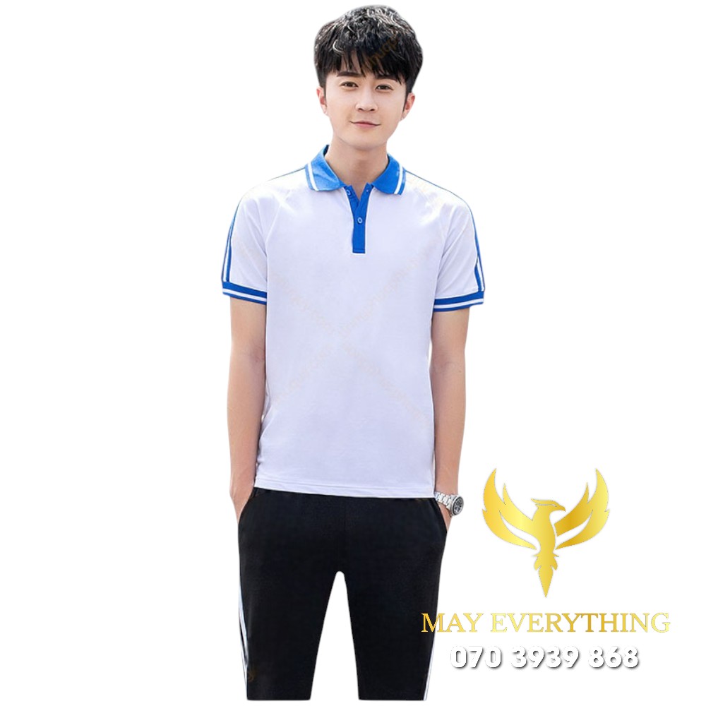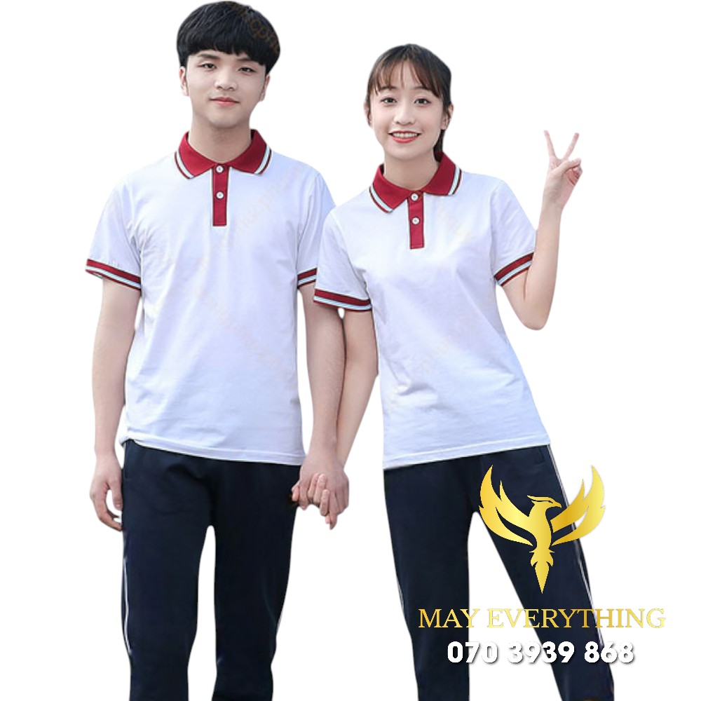 Áo polo hoặc áo thun: phối màu theo tone chủ đạo của trường, in logo rõ nét.
