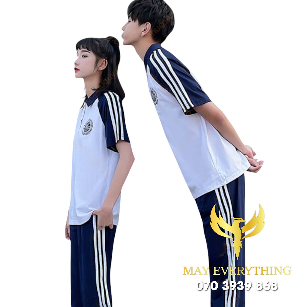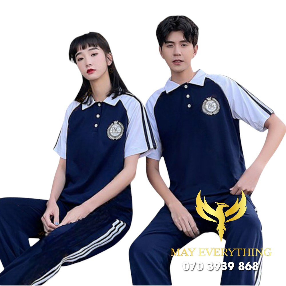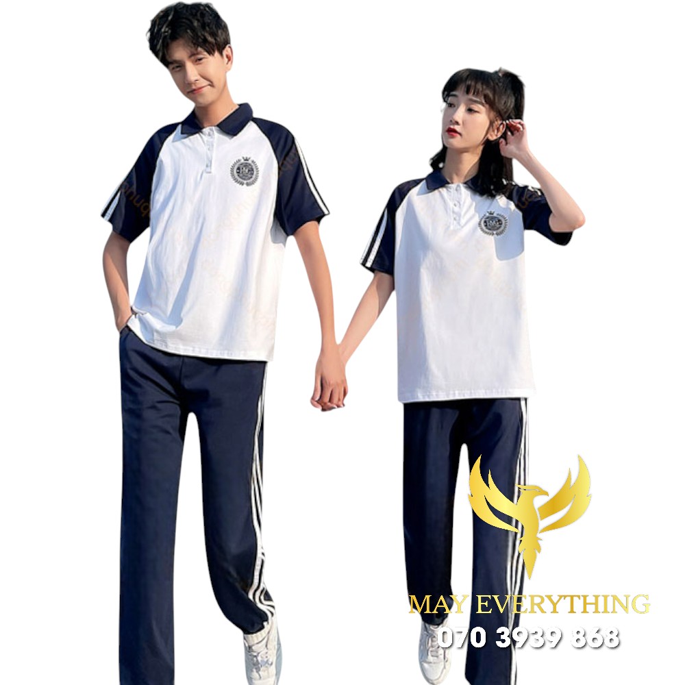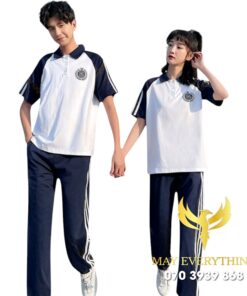 Áo polo hoặc áo thun: phối màu theo tone chủ đạo của trường, in logo rõ nét.