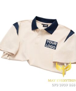 Đồng phục học sinh màu kem viền đỏ in logo trường