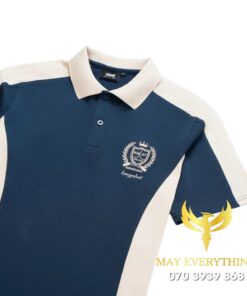 Đồng phục học sinh màu xanh viền trắng in logo trường
