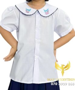 Đồng phục học sinh màu trắng in logo trường cấp 3
